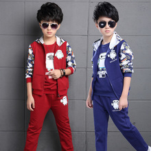 2017春秋季新款韩版 男童中大童时尚小怪兽休闲三件套8岁男孩套装
