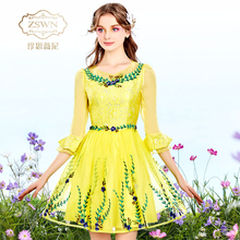 夏季欧根纱蓬蓬裙碎花复古刺绣连衣裙女春秋2017新款韩版显瘦大码