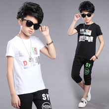 童装运动套装2017夏装新款男童短袖套装裤套装中大童字母两件套