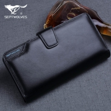 七匹狼男士真皮手拿包拉链长款钱包青年商务大容量头层牛皮男手包