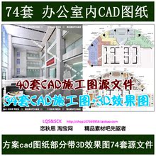 装修装潢办公空间室内设计方案cad图纸部分带3D效果图74套源文件