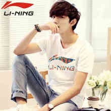 李宁男装运动装休闲装2017夏新品透气吸汗休闲运动短袖T恤GHSL015