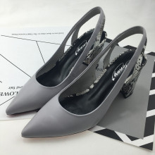 夏天性感凉鞋女2017新款中跟浅口小尖头显瘦真皮粗跟包头女鞋百搭