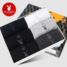 花花公子袜子男中筒短袜四季薄款纯棉吸汗防臭男士短口袜夏季黑色