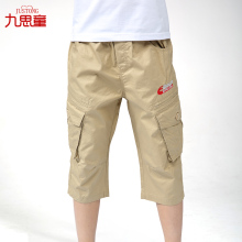九思童装儿童休闲中裤男童七分裤纯棉男孩夏装2017新款中大童裤子
