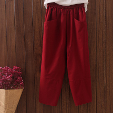女款春夏季2016新款休闲裤文艺范双口袋九分裤松紧腰宽松萝卜裤子