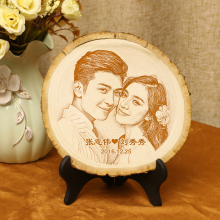 定制照片木牌实木雕刻工艺品木雕摆件木质礼品含木托底座X30