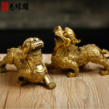 慈缘阁纯铜麒麟摆件一对开光招财送子黄铜财富麒麟家居风水装饰品
