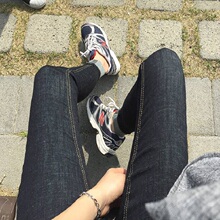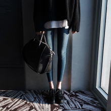 韩国代购秋季烟灰色高腰牛仔裤女长裤紧身黑色铅笔小脚裤深色显瘦