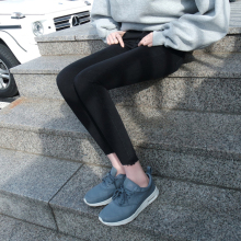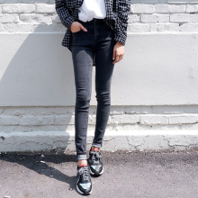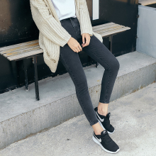 韩国代购春季高腰烟灰色九分牛仔裤女紧身显瘦学生黑色小脚铅笔裤