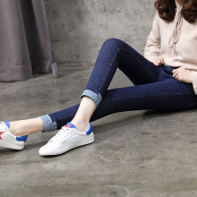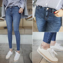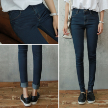 2015秋季新款牛仔裤女长裤小脚铅笔裤卷边紧身显瘦弹力学生潮深色