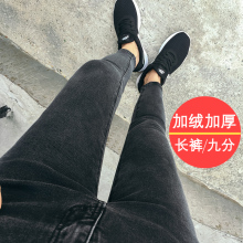 秋冬高腰加绒加厚牛仔裤女九分裤灰黑弹力显瘦加棉黑色铅笔小脚裤