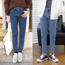 春季外穿高腰黑色学生韩版牛仔裤女九分裤紧身薄绒显瘦铅笔小脚裤