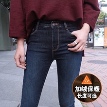 冬季墨蓝色高腰加绒加厚牛仔裤女小脚长裤加棉带绒保暖显瘦外穿潮