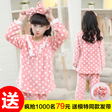 女童珊瑚绒睡衣秋冬季儿童长袖家居服法兰绒套装中大童加绒加厚款
