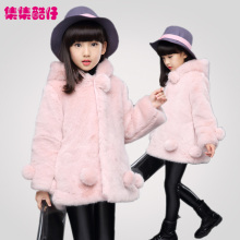 女童毛毛衣仿皮草外套2016新款连帽韩版女宝宝加厚外套冬装中大童