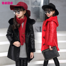2016新款中大童女童皮衣女大童装秋冬装加厚冬季风衣儿童加绒外套