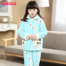 儿童睡衣2017春装新款大女童珊瑚绒夹棉家居服加绒加厚睡衣套装