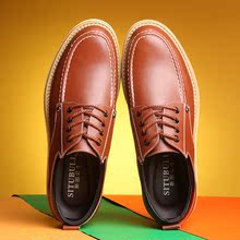2016秋季真皮青年男鞋潮系带商务休闲鞋韩版牛筋底男士皮鞋男鞋子