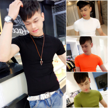 韩国简约男装2016夏款紧身t恤男小板瘦身短袖T恤青少年半截袖体恤