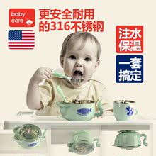 babycare儿童不锈钢餐具宝宝注水保温碗勺套装婴儿吸盘碗勺子辅食