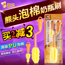 喜多熊头柄泡绵奶瓶刷 海绵奶瓶刷+奶嘴清洁刷 360°旋转 H13004