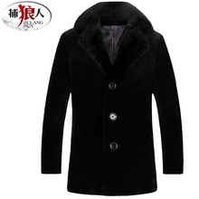 羊毛皮草大衣男 捕狼人冬装西装领 水貂毛领皮衣皮毛一体男装
