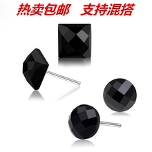 新款925纯银耳饰女 黑玛瑙超帅气男士耳钉 韩版潮耳环银饰品 闪亮