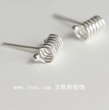 s990纯银耳钉女原创弹簧个性创意小耳饰防过敏男日韩耳环足银饰品