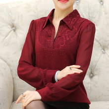 秋装新款中老年大码女装雪纺衫妈妈装翻领雪纺长袖T恤中年打底衫