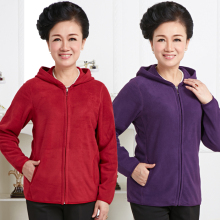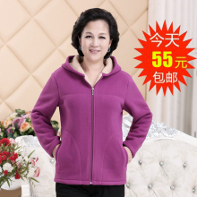 秋冬新款中老年女装摇粒绒连帽外套女 妈妈抓绒卫衣加肥加大开衫