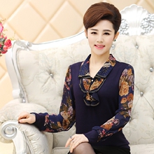 中老年女装长袖t恤 2017夏装中年女修身上衣 妈妈装雪纺袖T恤衫