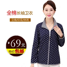 春款爆款中老年女装立领全棉长袖休闲卫衣妈妈装大码开衫夹克外套