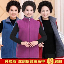 秋装新款中老年摇粒绒外套女 妈妈装马夹立领抓绒背心 大码坎肩