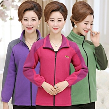 中老年女装秋季摇粒绒抓绒外套 妈妈装加厚加绒大码立领保暖卫衣