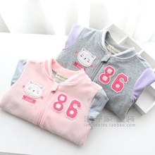 澄子家女童装 2017春款 儿童天鹅绒加厚双层外套 棒球服小猫卫衣
