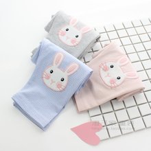 澄子家童装 2017夏款 女童全棉打底裤 刺绣小兔日系条纹七分裤