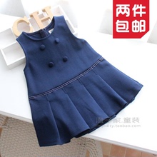 澄子家女童装 2017春款 儿童宝宝双排扣马甲裙子 学院风背心裙