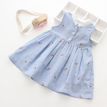 澄子家女童装 2017夏装新款 儿童棉麻条纹绣小花连衣裙子背心裙