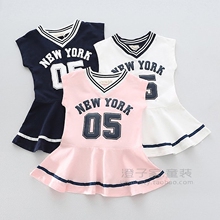 澄子家童装 2017夏装新款 女童全棉短袖连衣裙子 运动感网球裙