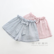 澄子家童装 2017夏装新款 女童棉麻感短裤 蝴蝶结文艺范宽松裙裤