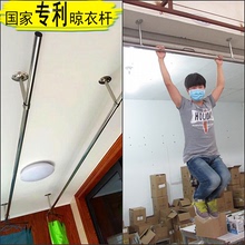 吊顶阳台晾衣杆 固定式室内晒衣架不锈钢单双杆挂衣杆架 墙顶吊座