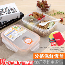 微波炉饭盒1.5L大容量密封防漏防摔便当盒方形多格塑料分隔保鲜盒
