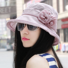 2017年夏天女帽 棉麻盆帽 花朵遮阳帽 渔夫帽 瘦脸帽韩版帽时装帽