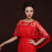 春夏季婚纱礼服蕾丝薄披肩新娘红色披肩结婚旗袍白色伴娘斗篷外套