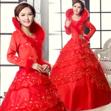 冬季婚纱礼服新款韩版长袖毛领齐地大码红色新娘冬款加棉加厚保暖
