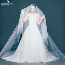 韩式简约新娘头纱双层3米超长拖尾头纱软纱5米10米婚纱头纱裸包邮