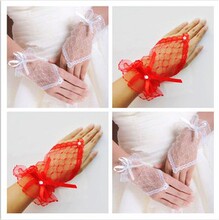 韩式结婚蕾丝新娘手套婚纱礼服配件加长款过肘露指红手套冬季包邮
