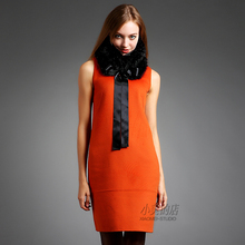 2016新款秋冬季欧美羊毛呢背心裙橘色宽松连衣裙新年新娘服饰无袖