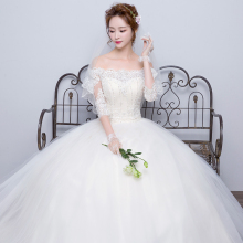 2017春季新款婚纱礼服新娘结婚齐地韩式修身婚礼蕾丝大码一字肩女